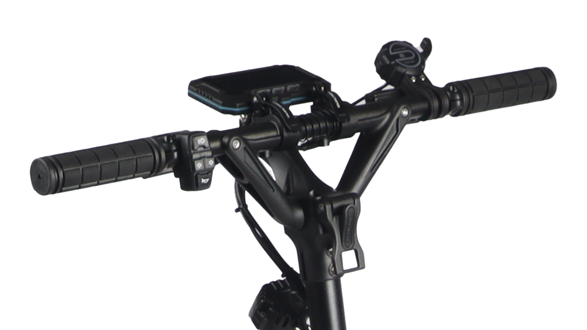 Sistem za brzo sklapanje koji se sastoji od klizača i QR ručice, omogućuje brzo i sigurno sklapanje stuba volana, dok kuka za zaključavanje spuštenog stuba volana obezbeđuje lakšu prenosivost. Osim stuba volana, u potpunosti su sklopive i ručke volana, pa ovaj električni trotinet zauzima minimalni prostor kada je sklopljen.